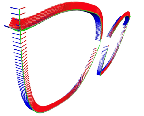 Once the surface point cloud data is imaged, our algorithm module perform surface point extraction or edge detection for motion path line generation. The path line points are the motion coordinates in x, y, z given to robot for process motion.